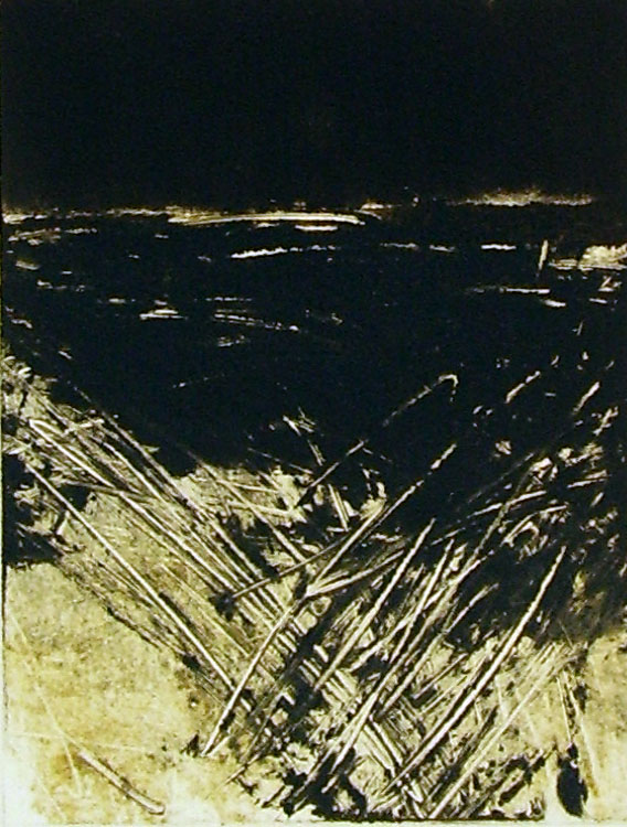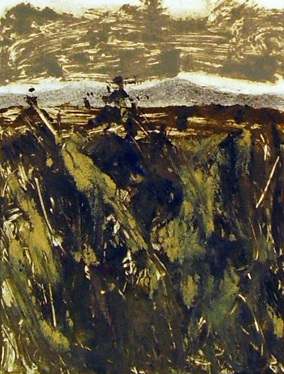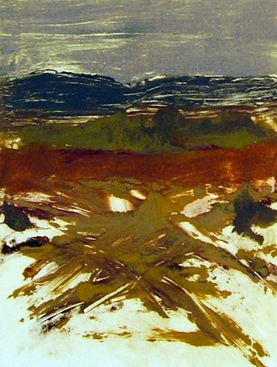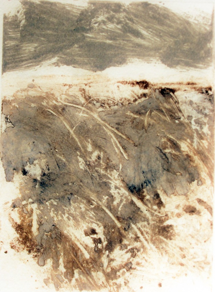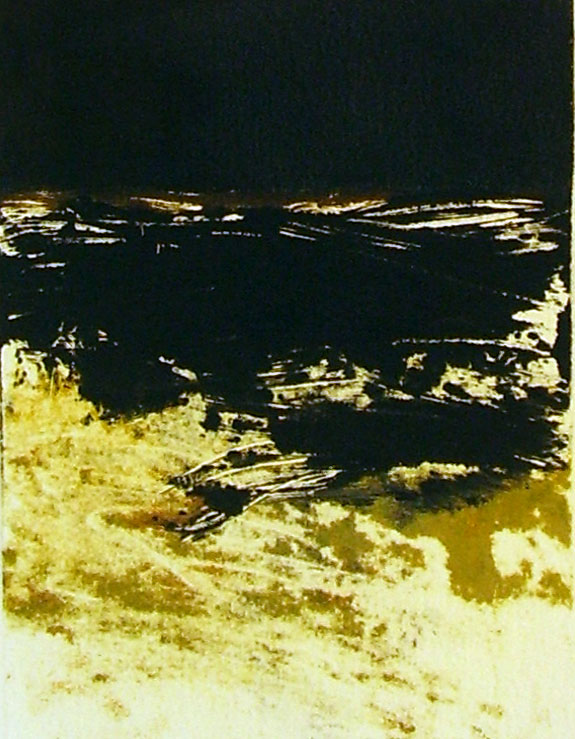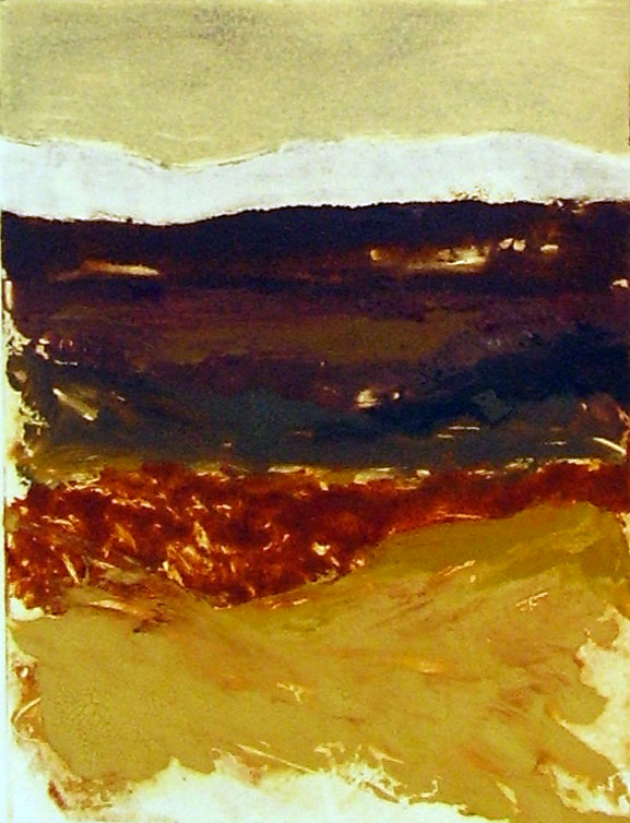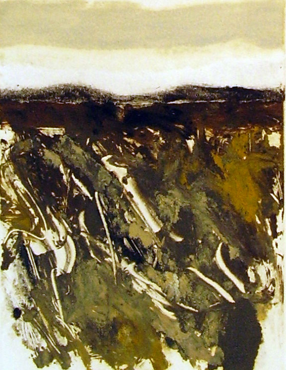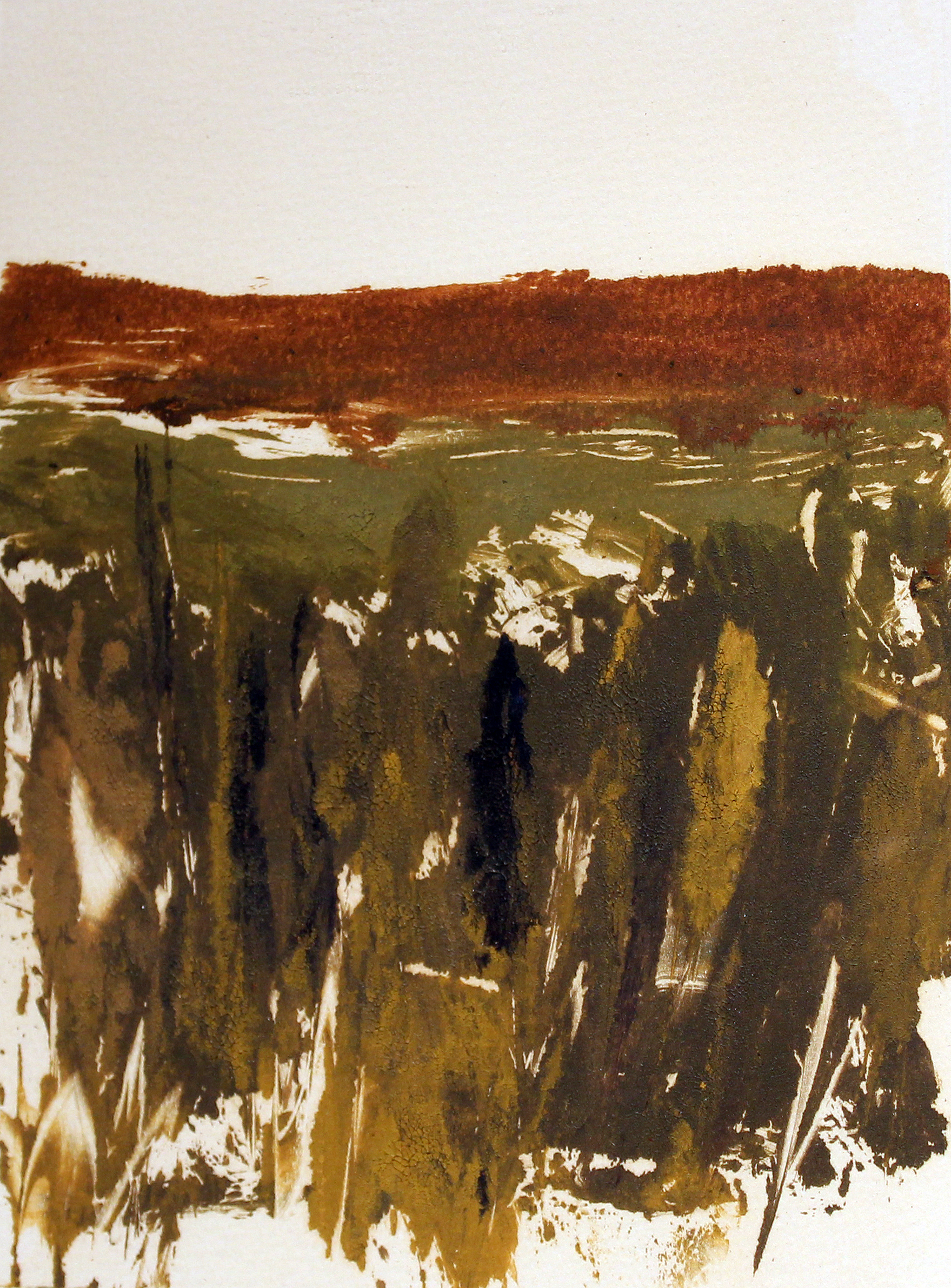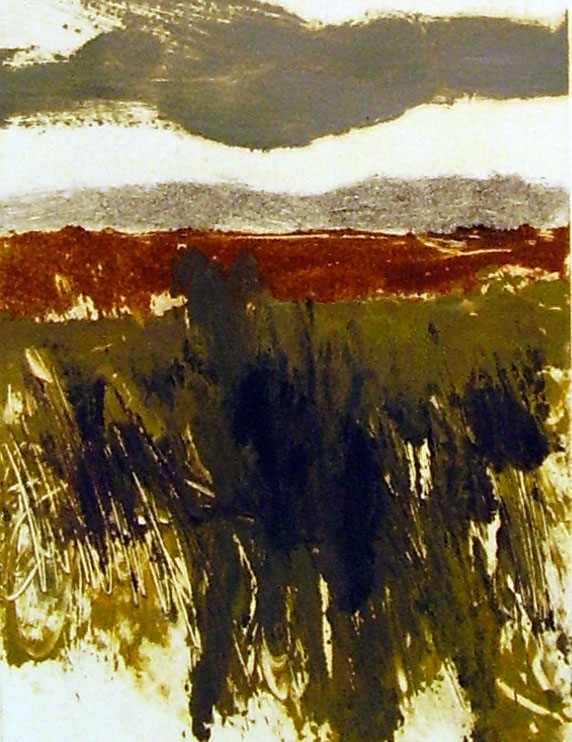 The series “Virginia-La Pampa” proposes an exploration of subjective spaces through the combination of landscapes from my native Argentina (La Pampa region being the flat, agricultural landscape that surrounds Buenos Aires, the capital) and from Virginia, where I was living and where the series was done. The almost 130 monoprints were made at a residency at the Virginia Center for the Creative Arts (VCCA) in 1993.