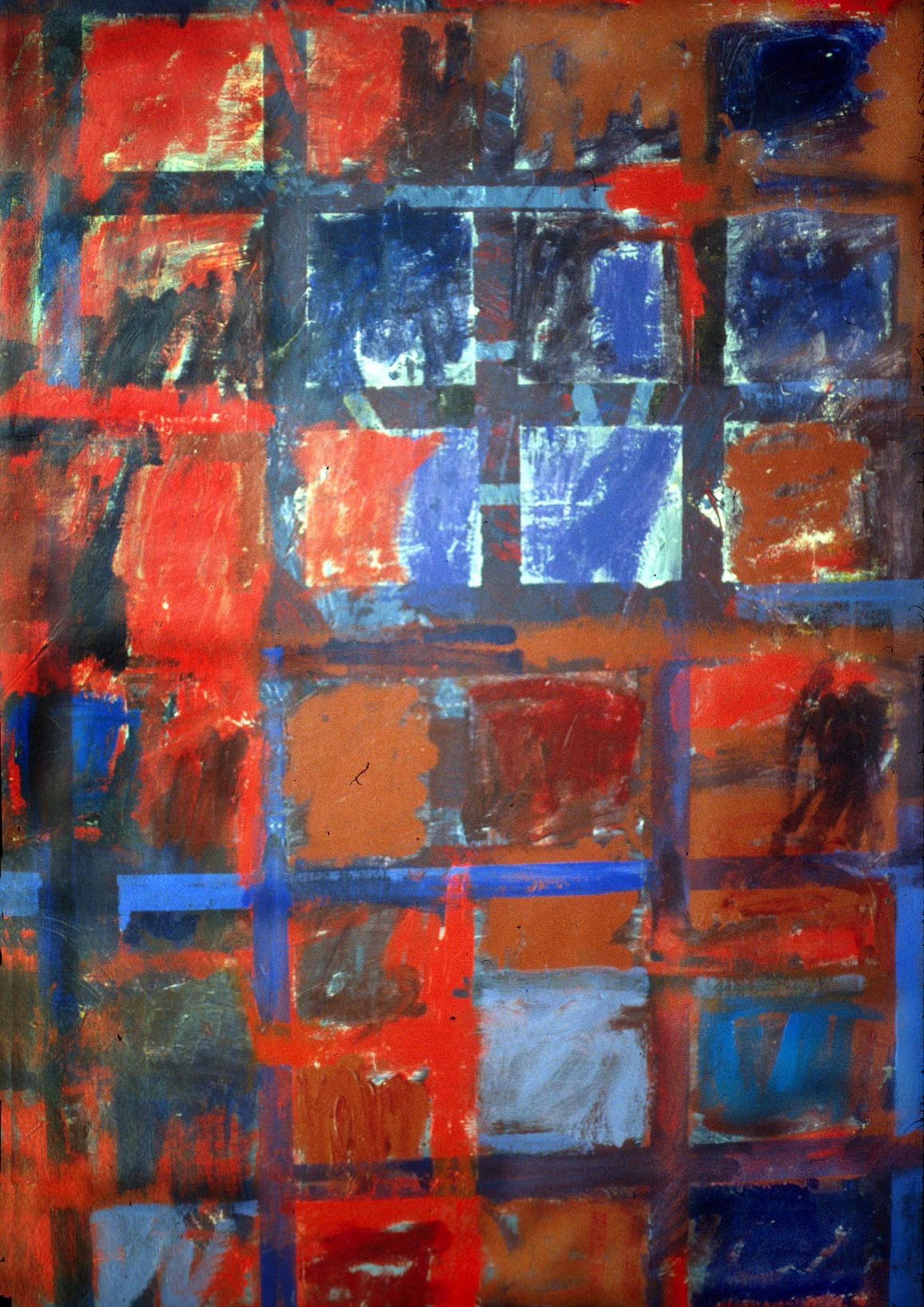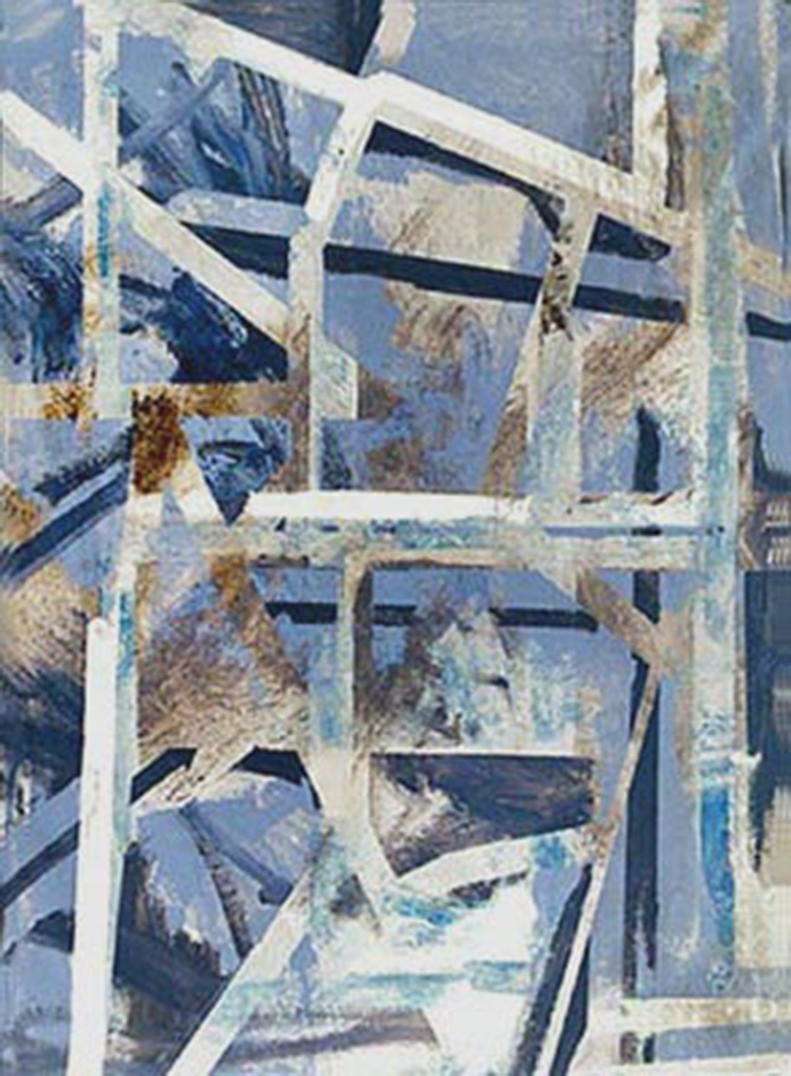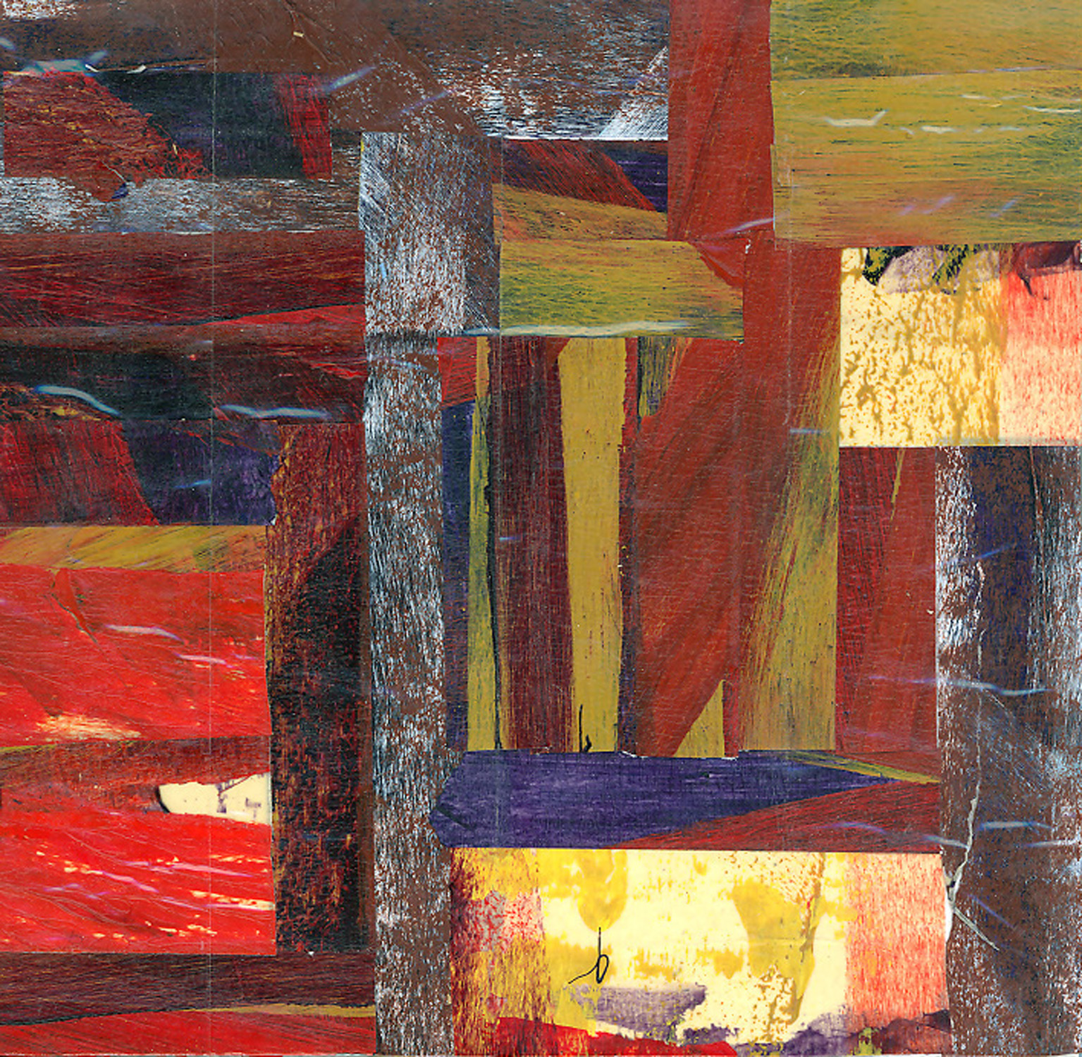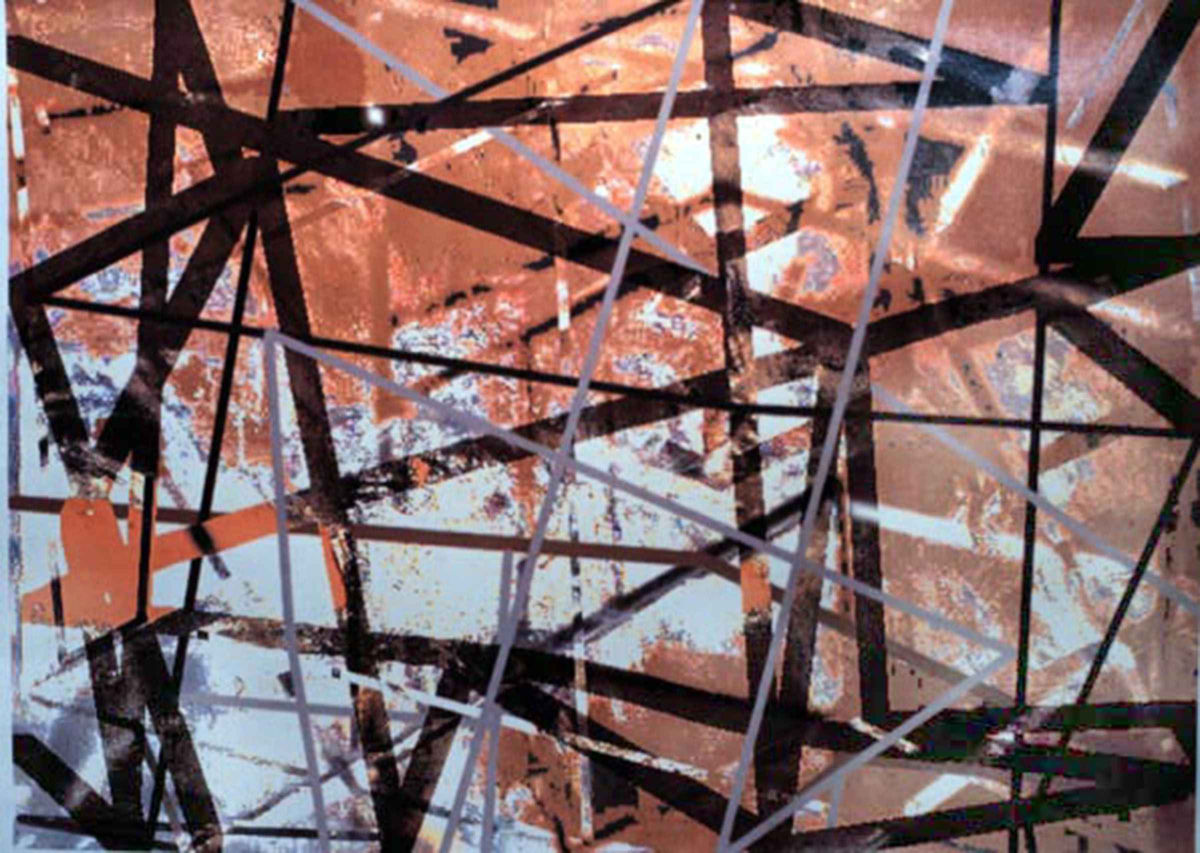 The paintings are constructed using masking tape and following a series of movements. The movements, however, are not exact, nor the pieces of tape uniform. In the building of the figure, the pieces of tape and the spaces in between them articulate and negotiate amongst themselves a number of spatial, textural and chromatic decisions while following a general blueprint. In the process the general direction of helicoidal movements is constantly deconstructed and questioned by the textures, colors, and values of the pieces of tape as well as by their placement in the general arrangement.